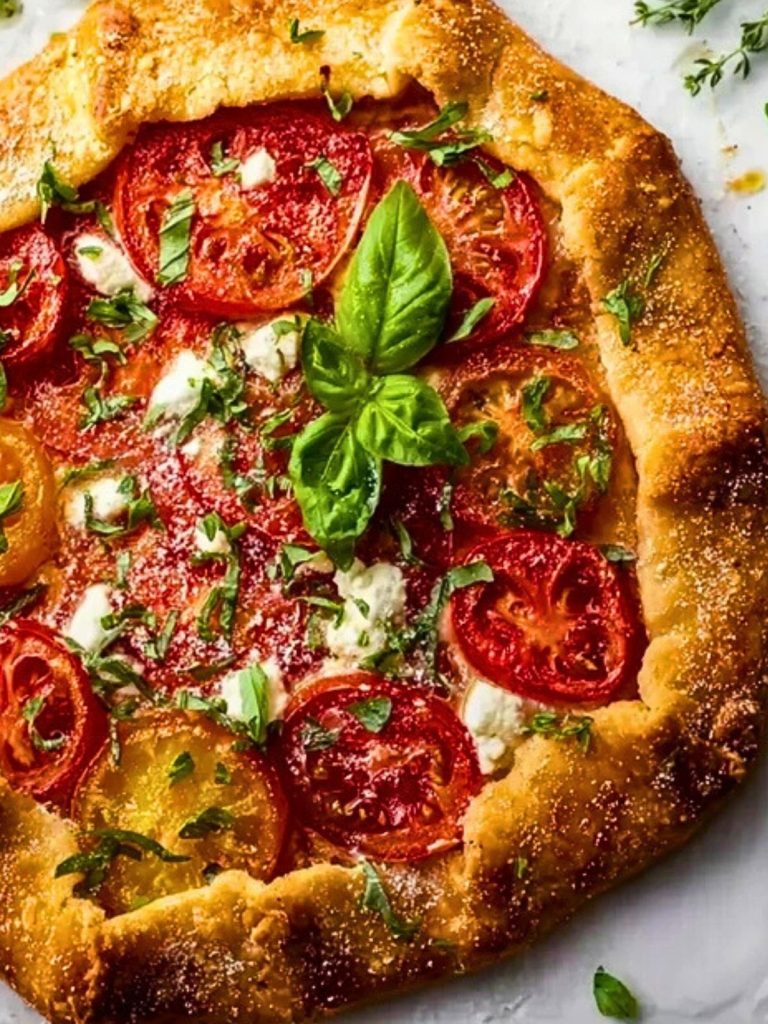 A rustic tomato basil galette with goat cheese is the kind of dish that makes simplicity feel luxurious. It brings together sweet, ripe tomatoes, tangy goat cheese, and fragrant basil on a flaky, golden crust—like summer wrapped in pastry. With each bite, you get rich savory depth from the cheese, bright acidity from the tomatoes, and that unmistakable herbal finish of fresh basil.