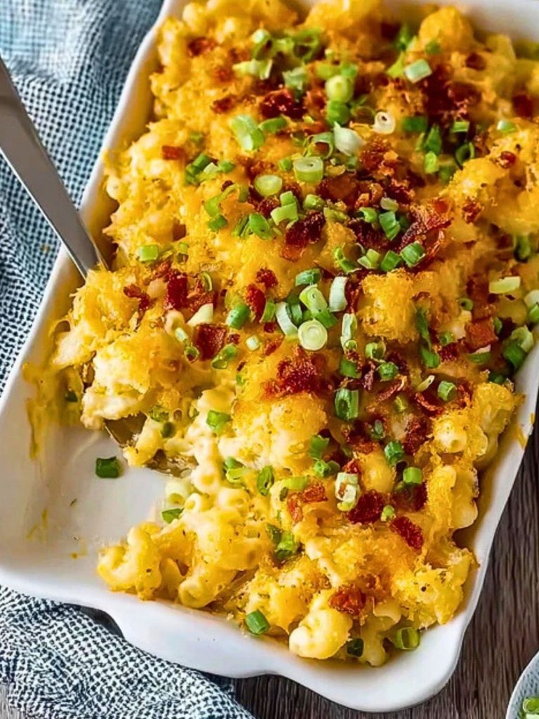 Perfect for chilly nights, potlucks, game day, or anytime you need a hearty, feel-good meal, this recipe levels up traditional macaroni and cheese into a full-on experience. Expect crispy bacon, fresh green onions, a buttery crumb topping, and pockets of tender potato layered throughout the cheesy pasta.