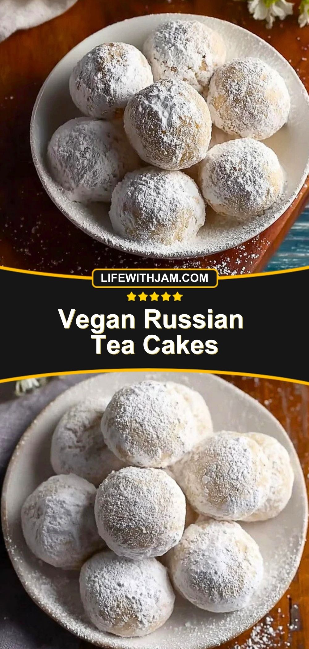 Tender, nutty, and rolled in snowy powdered sugar, these Vegan Russian Tea Cakes are a holiday classic made completely dairy- and egg-free. With just a few pantry ingredients, these melt-in-your-mouth cookies come together quickly for gifting, tea time, or any cozy occasion.