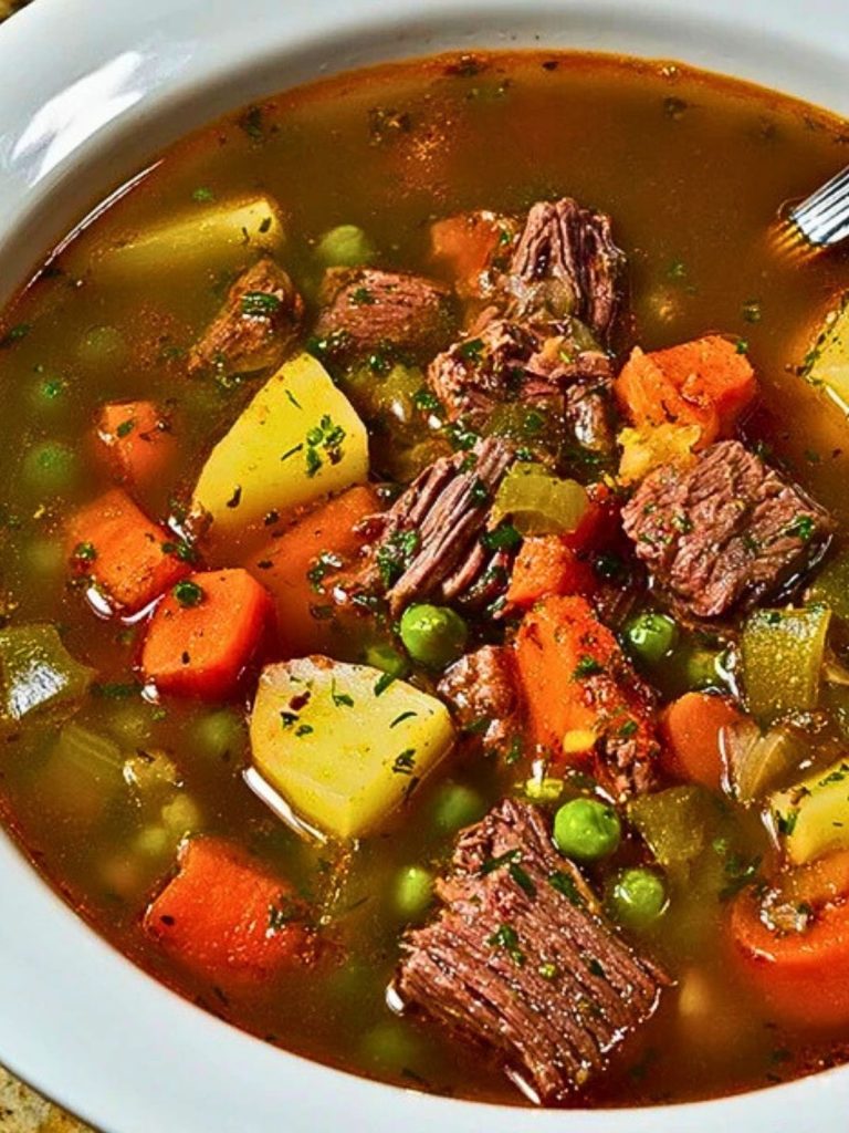 This hearty Vegetable Beef Soup is comfort in a bowl—rich, savory broth filled with tender chunks of beef and a medley of colorful vegetables. It’s the kind of soup that warms you to the core on a chilly night and fills your kitchen with the nostalgic aroma of home-cooked goodness. Whether you’re fighting off a cold or feeding a crowd, this soup brings nourishment and satisfaction with every spoonful.