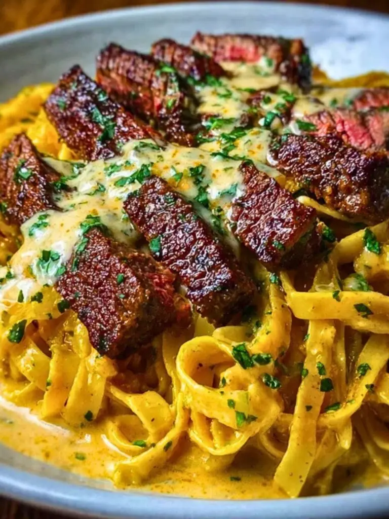 Serve this dish fresh for the best texture and flavor. Pair it with a crisp green salad or roasted vegetables for balance. If storing leftovers, keep the steak and pasta separate in airtight containers in the fridge for up to 3 days. Reheat pasta gently with a splash of cream or milk to restore creaminess, and warm steak slices in a skillet to avoid overcooking.