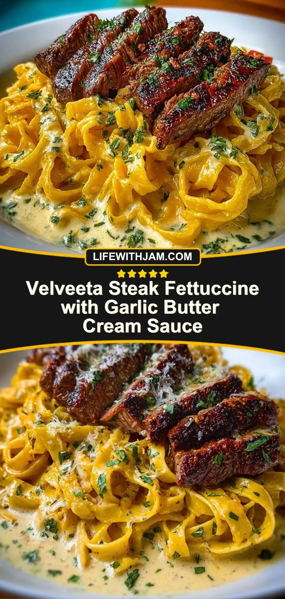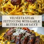 Keywords: velveeta steak pasta, garlic butter cream fettuccine