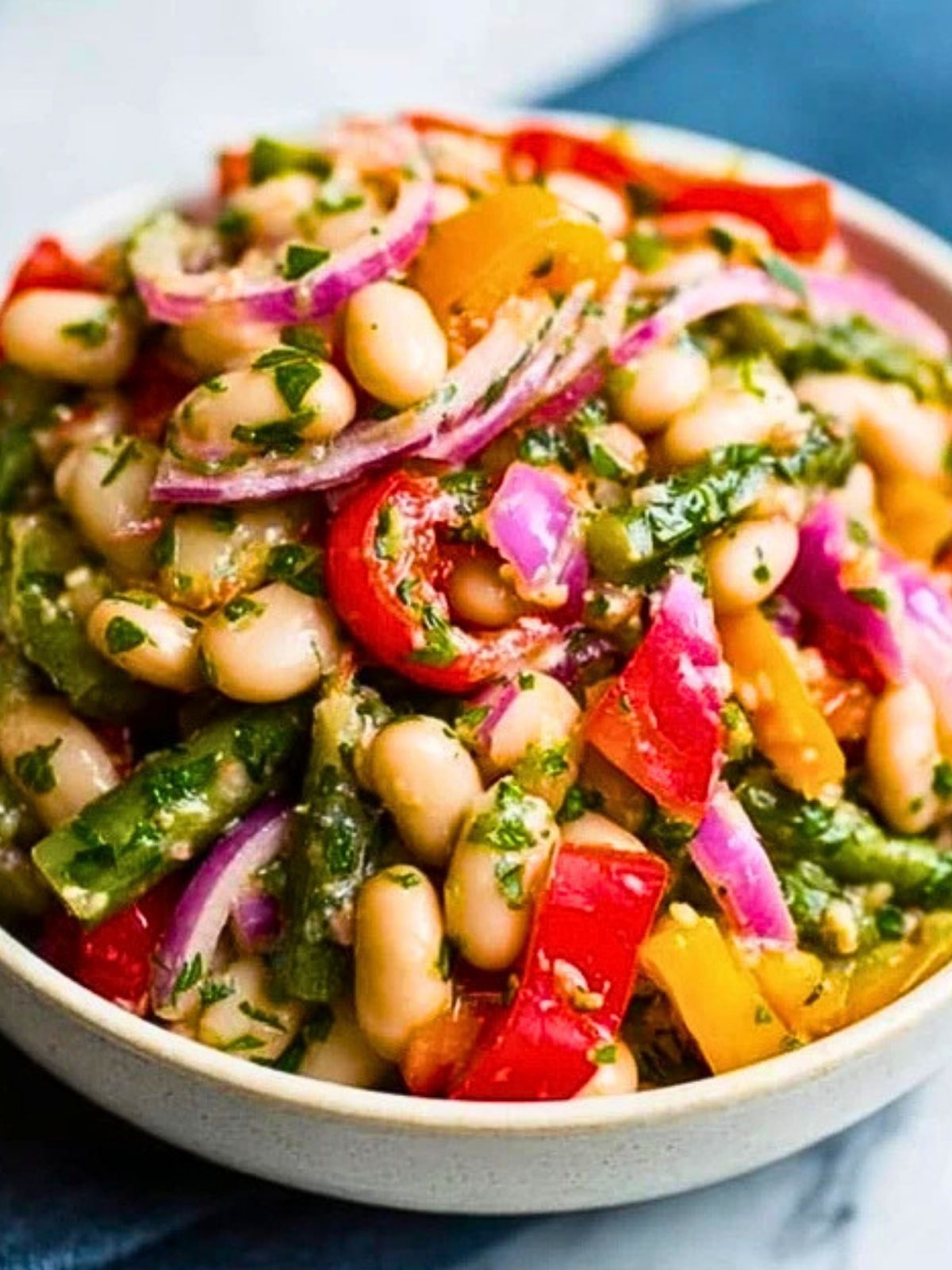 The other reason it stands out is the balance. You get creamy beans, crunchy peppers, sharp red onion, fresh parsley, and a lively dressing that ties everything together. It is simple food, but it tastes bold and memorable.