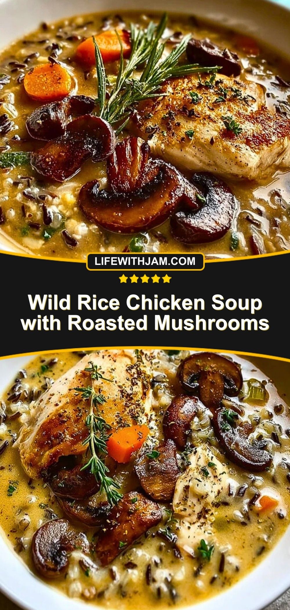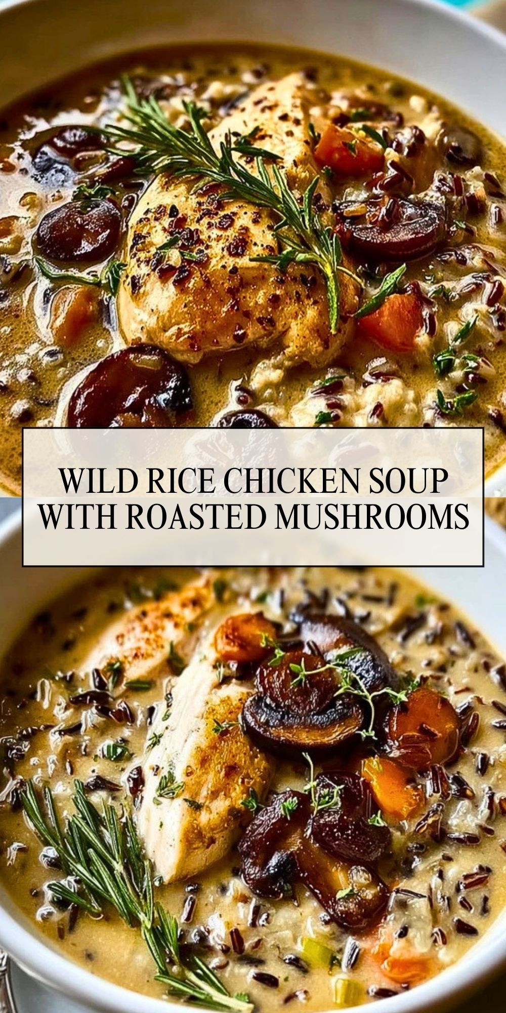 This Wild Rice Chicken Soup with Roasted Mushrooms is rich, creamy, and packed with flavor. A comforting bowl made with roasted mushrooms, tender chicken, and nutty wild rice—perfect for chilly nights or meal-prepping ahead.