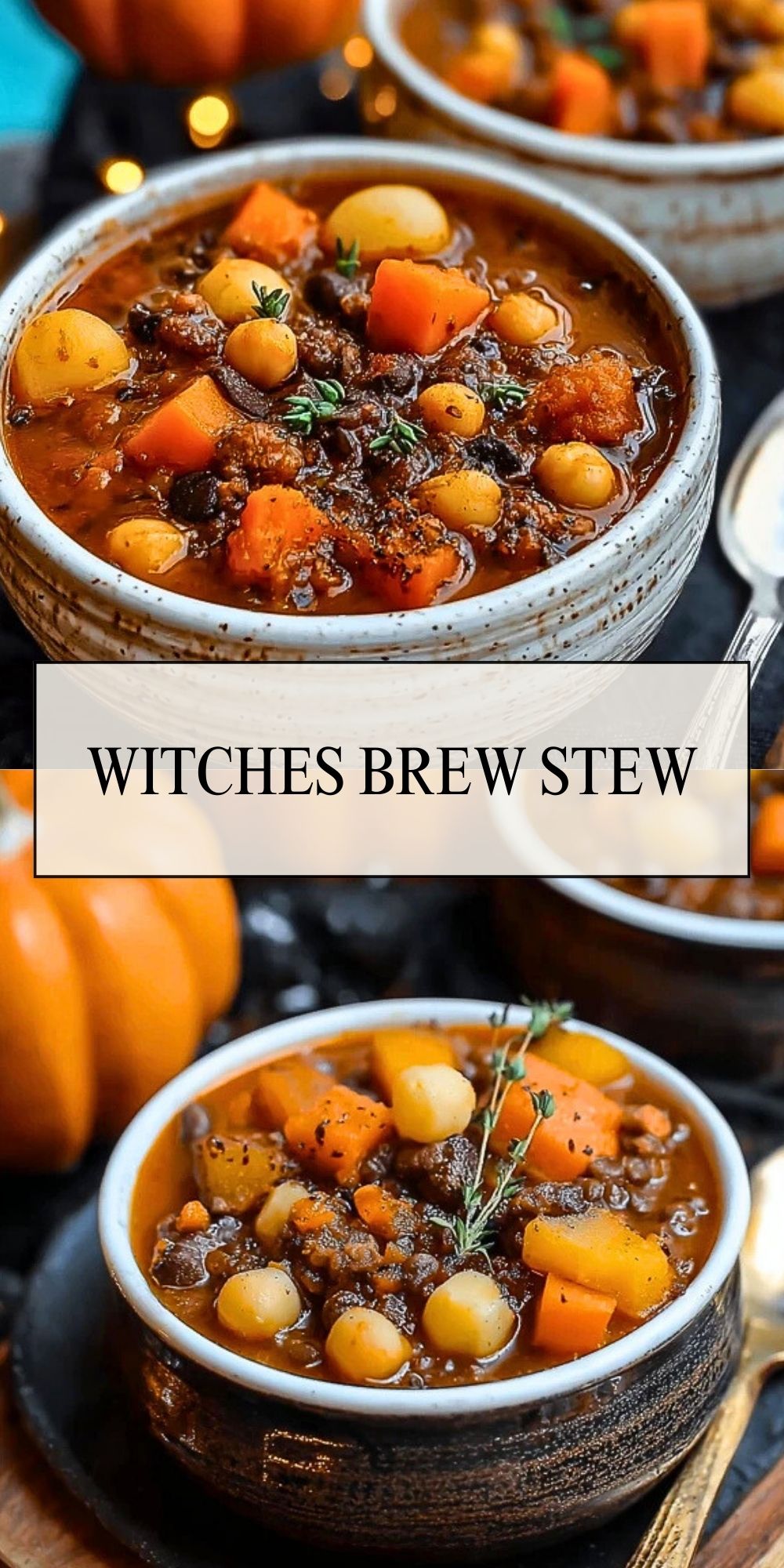 Ladle the Witches Brew Stew into bowls and top with a sprig of thyme or a drizzle of olive oil. Serve with warm crusty bread for the ultimate comfort meal.
