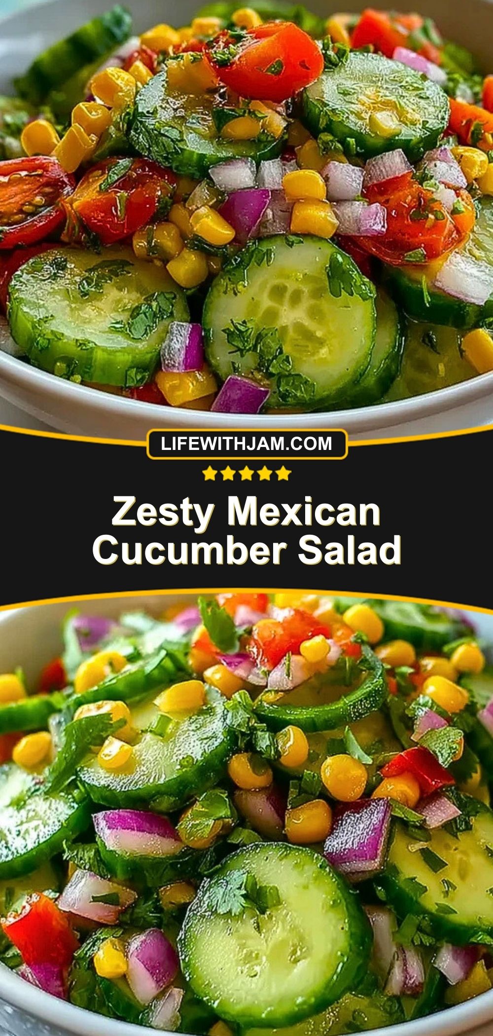 Cool, crisp, and bursting with tangy flavor, this Zesty Mexican Cucumber Salad is the kind of refreshing side dish that steals the spotlight. Packed with juicy cucumbers, charred corn, red onion, and bright pops of cilantro, it’s the perfect balance of crunchy, zesty, and fresh. Whether you’re planning a taco night, backyard BBQ, or need a quick and healthy lunch option, this salad delivers major flavor with minimal effort.